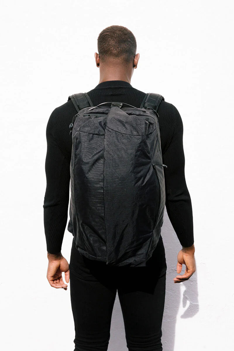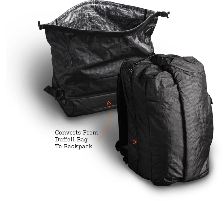 Converts from a backpack to a duffel bag.